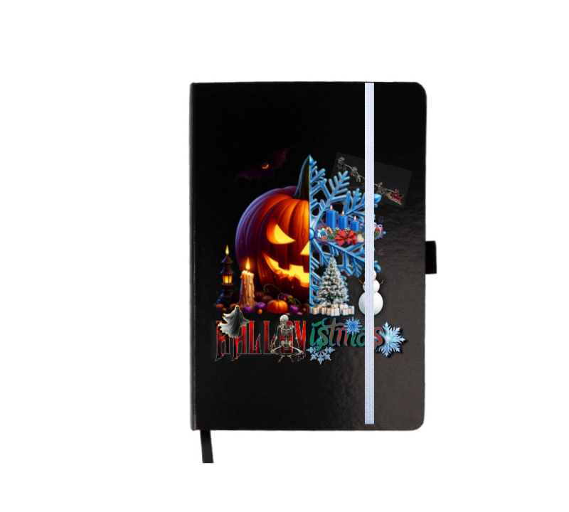 Klasikinio stiliaus ir kieto viršelio užrašų knygutė „HALLOWIN CHROSTMAS” juoda